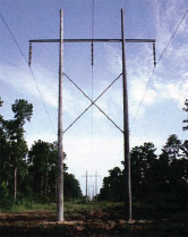 We make large steel framing members, and can make the exact same wood structures only with steel. Up to 345kV in galvanized or weathering.